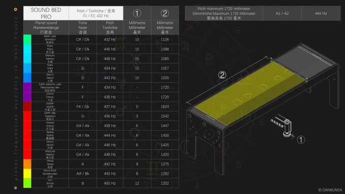 The monochord is developed under the same design aspects as the PRO SOUND BED and described in detail there.