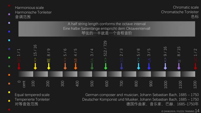 Intervals such as DO, RE, MI etc. do not occur arbitrarily on a stringed instrument, but always at a defined proportional partial length compared to the whole string length, which corresponds to the fundamental.