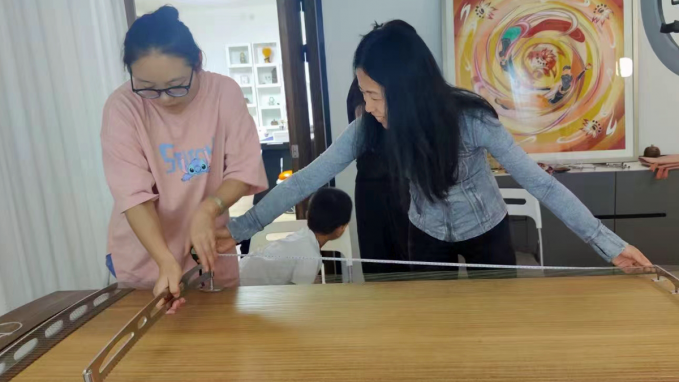 To set up the adjustable string bridge, we use tuning charts to correctly place the string bridge on the instrument and retune the sound as desired.